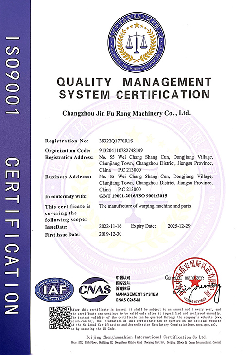 歡迎訪問常州錦福榮機械有限公司網站! 公司-主要產品有:整經機,余紗整經機,分絲整經機及各種特殊形式紗架及配件!